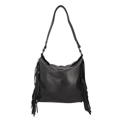 Borsa a spalla grande Janet con frange colore nero