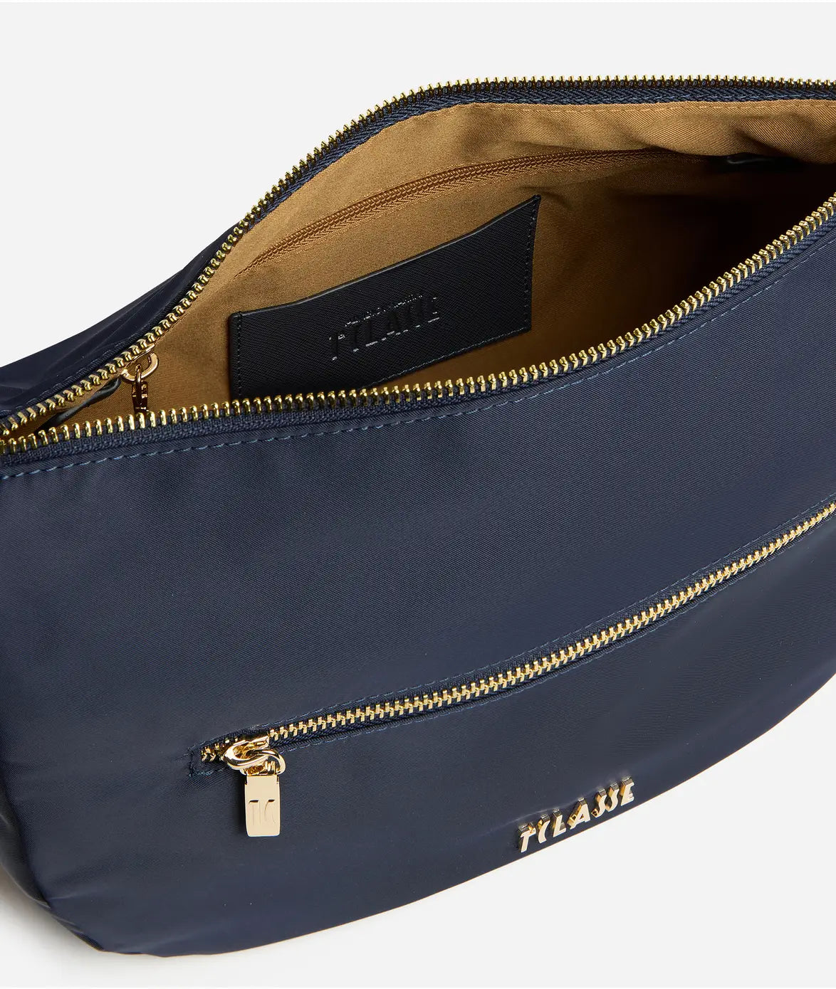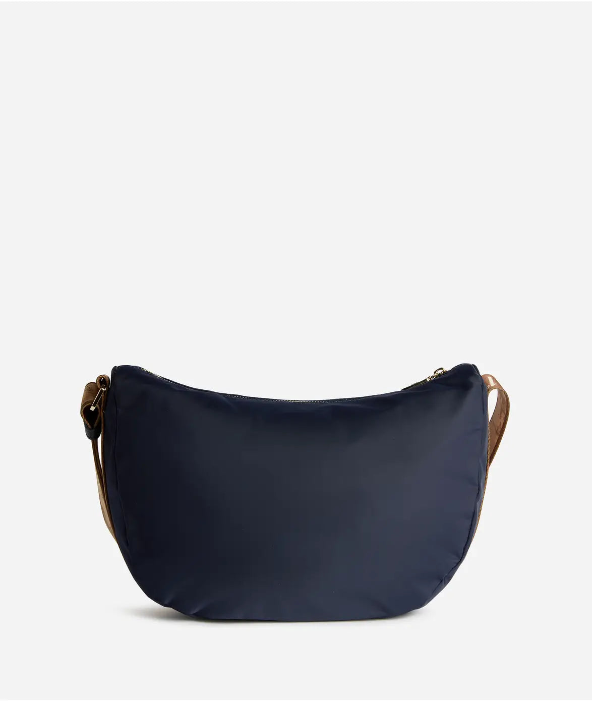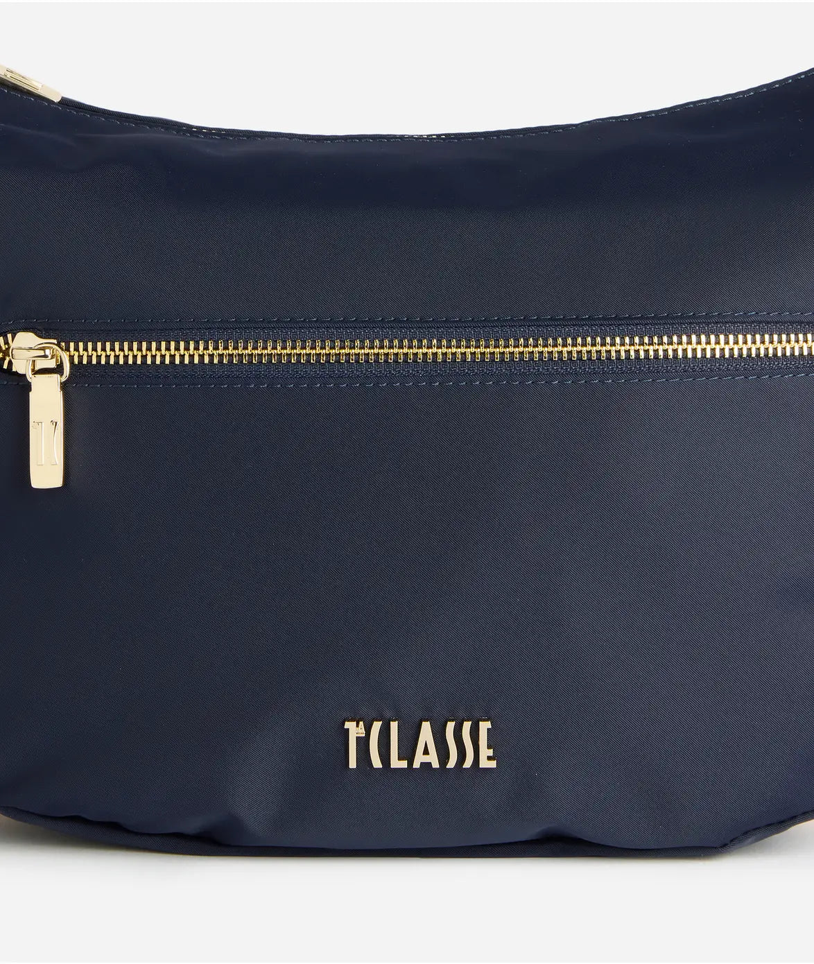 Morbida e capiente, la tracolla a mezzaluna grande in nylon riciclato sarà l'alleata perfetta per affrontare le giornate più attive della stagione con uno spirito energico e green. La tracolla regolabile in nastro la impreziosisce, abbracciandone la silhouette con la stampa Geo Classic e arricchendosi del logo 1ᴬ Classe in corsivo sul lato opposto. Le tonalità invernali, ispirate ai colori plumbei del cielo scozzese, sono illuminate dall'oro chiaro della tasca frontale zippata e del maxi logo 1ᴬ Classe, rendendo accattivanti i look urban.