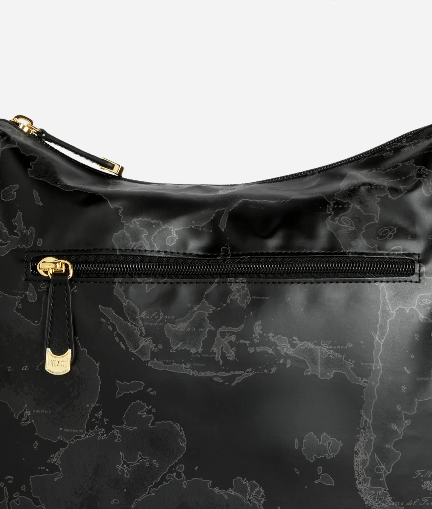 Il piping e l'inserto in eco-pelle definiscono la silhouette della sottospalla Geo Soft Black, aggiungendo carattere e dimensione al tessuto morbido e impermeabile. Completo di una tasca frontale e più tasche interne, il modello offre la portabilità sottospalla e crossbody grazie allo spallaccio in eco-pelle e alla tracolla in nastro logato, entrambi rimovibili. Capiente e versatile, interpreta lo stile del brand con funzionalità e un tocco grintoso.