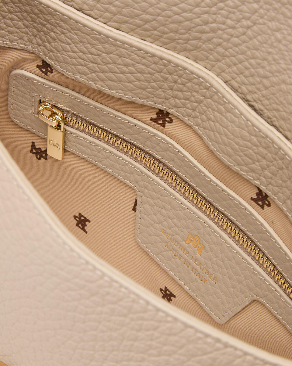 Dettagli interni: unico scomparto con tasca con zip e taschini.