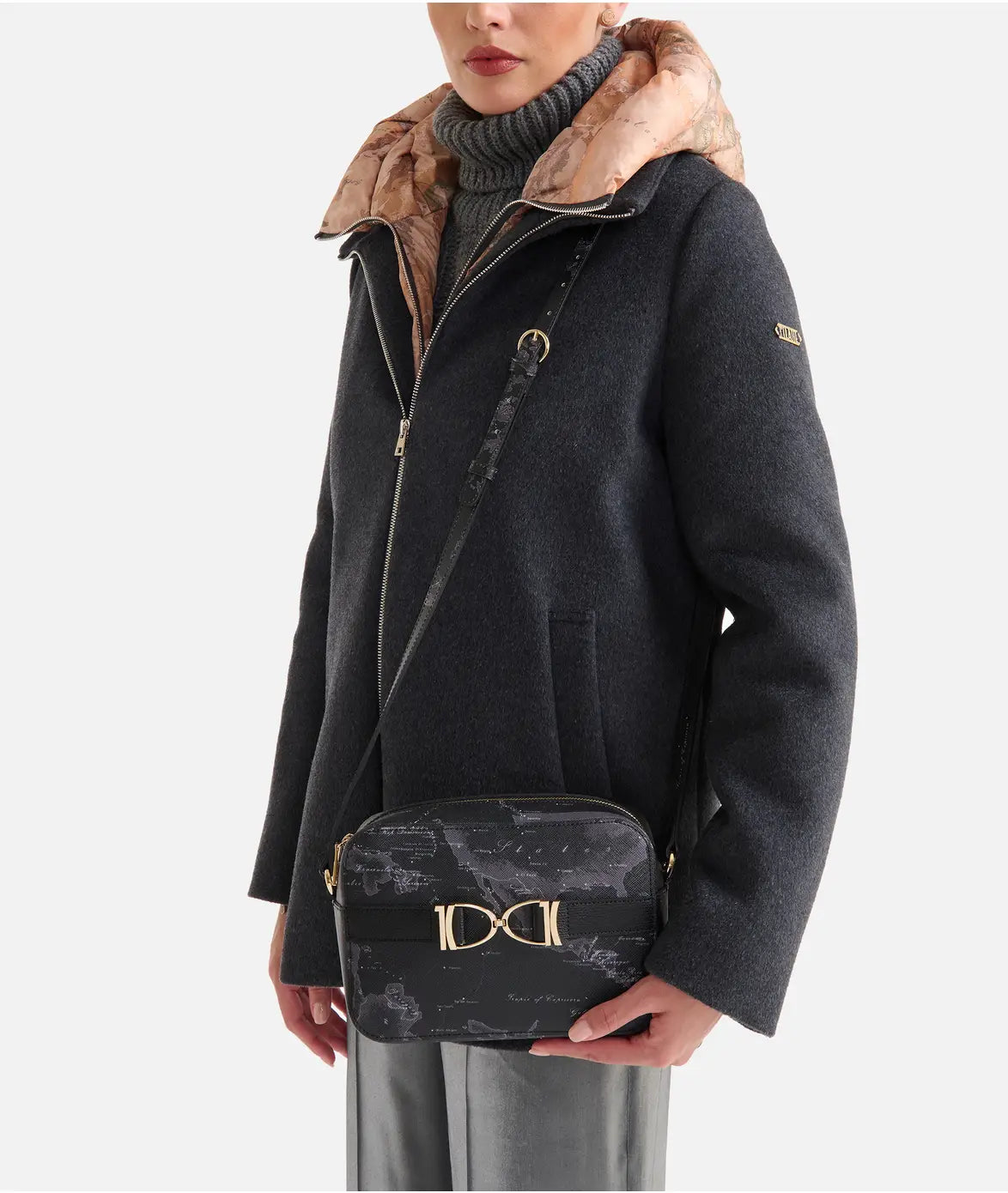 Il tessuto Geo Night evoca il fascino delle notti scozzesi nella tracollina reporter Folk Geo Night. Il volume compatto e squadrato dà risalto al maxi morsetto con doppia staffa logata 1C e viene abbracciato dalle bande in pelle granata fine nera. Il modello è completato dalle tasche interne e dalla tracolla regolabile in pelle granata fine. Un accessorio dalla personalità grintosa che chiama l'abbinamento con sneaker e stivali di Collezione, per look urban moderni e sofisticati.