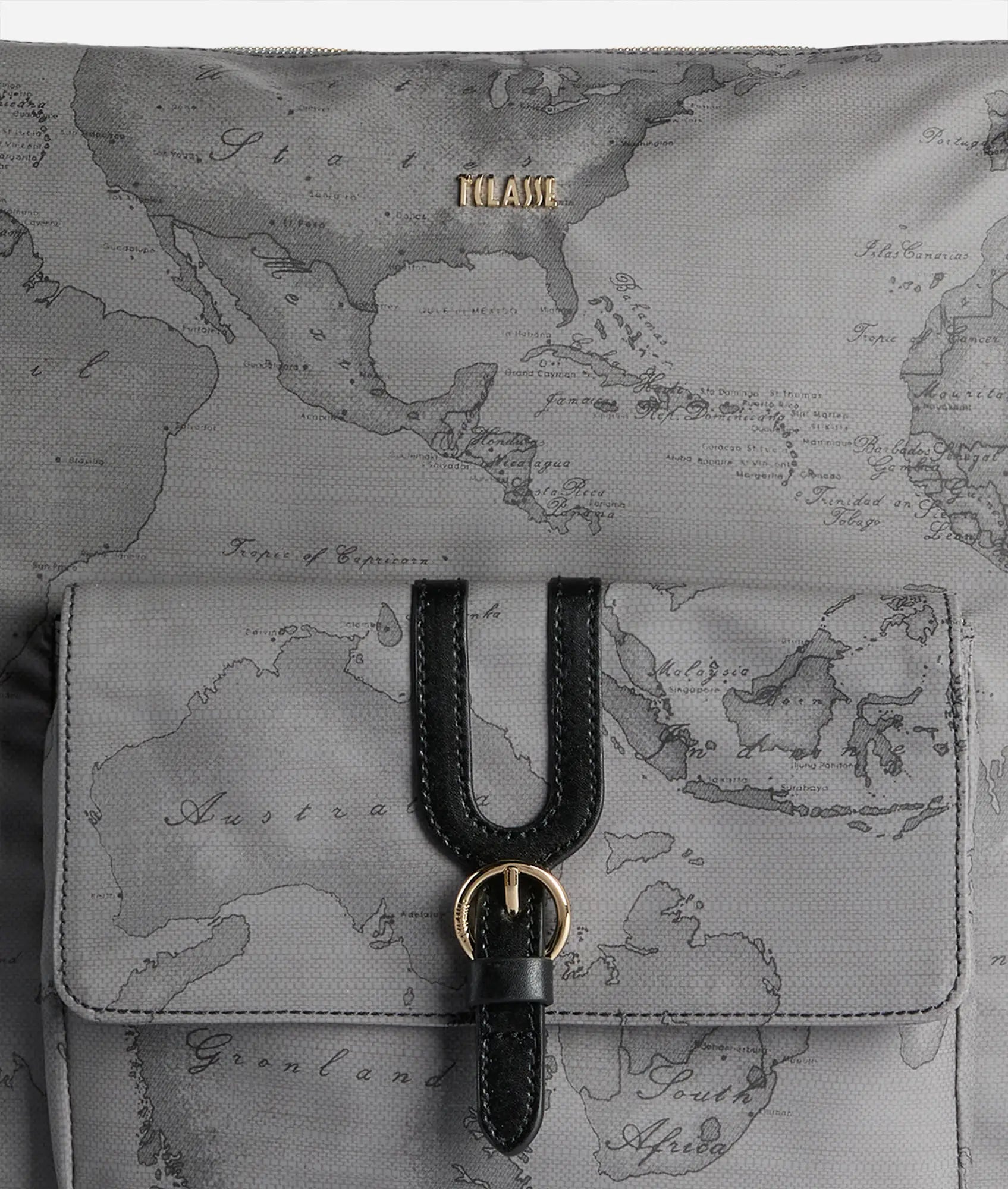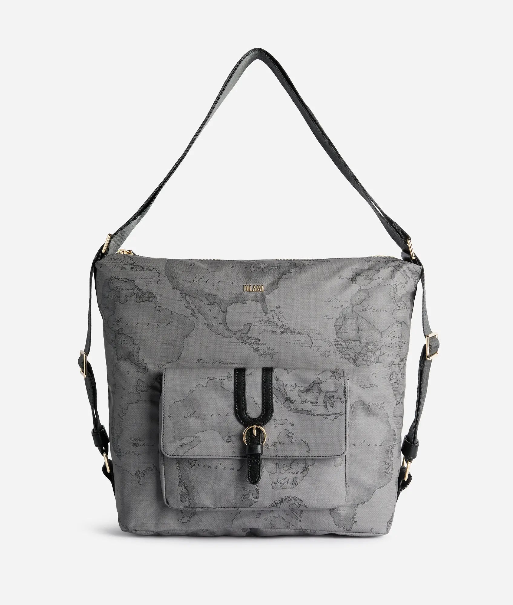 La borsa sottospalla in tessuto Soft interpreta il Viaggio in Scozia attraverso la stampa Geo Dark, abbinata all'inserto sagomato in pelle liscia per un look grintoso che omaggia le suggestive Highlands. Flessibile ed estremamente capiente, è provvista di una tasca frontale e più tasche interne ed è illuminata dal logo 1ᴬ Classe in oro chiaro. Il modello si può indossare anche a zaino facendo scorrere lungo i lati i nastri logati: materiale funzionale e spirito avventuroso per un accessorio perfetto in città e in viaggio, in qualsiasi condizione meteo.