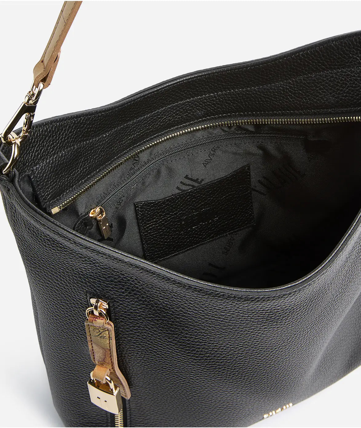 La nuova Mystery Bag è perfetta per custodire tutti i tuoi must-have quotidiani. Il volume è morbido e capiente grazie alla costruzione a T in pelle granata, che dona luce e texture alle raffinate tonalità di stagione. Il suo segno distintivo è la tasca frontale chiusa con zip, il cui tiralampo con stampa Geo Classic si completa di un grazioso lucchetto con logo 1C: il tiralampo si può agganciare sul retro della borsa tramite un gemello, rendendo più sicura la chiusura. Completata dal logo 1ᴬ Classe in oro chiaro, vanta una doppia portabilità: il risultato è un insieme armonioso e originale di eleganza e funzionalità.