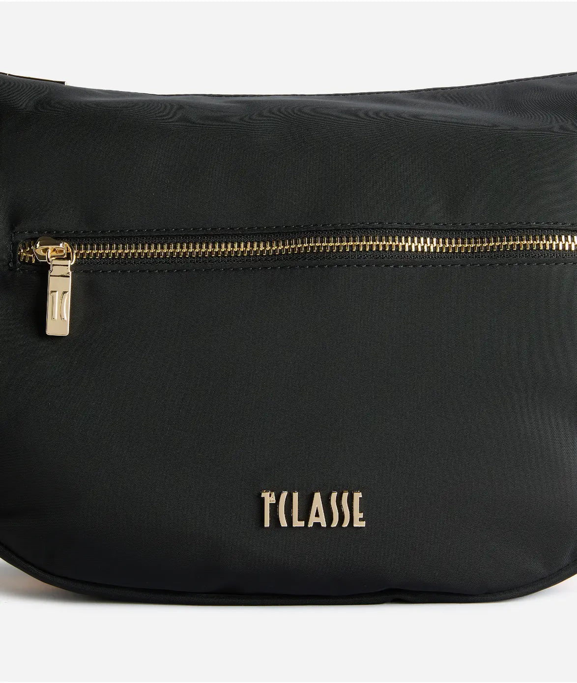 Morbida e capiente, la tracolla a mezzaluna grande in nylon riciclato sarà l'alleata perfetta per affrontare le giornate più attive della stagione con uno spirito energico e green. La tracolla regolabile in nastro la impreziosisce, abbracciandone la silhouette con la stampa Geo Classic e arricchendosi del logo 1ᴬ Classe in corsivo sul lato opposto. Le tonalità invernali, ispirate ai colori plumbei del cielo scozzese, sono illuminate dall'oro chiaro della tasca frontale zippata e del maxi logo 1ᴬ Classe, rendendo accattivanti i look urban.